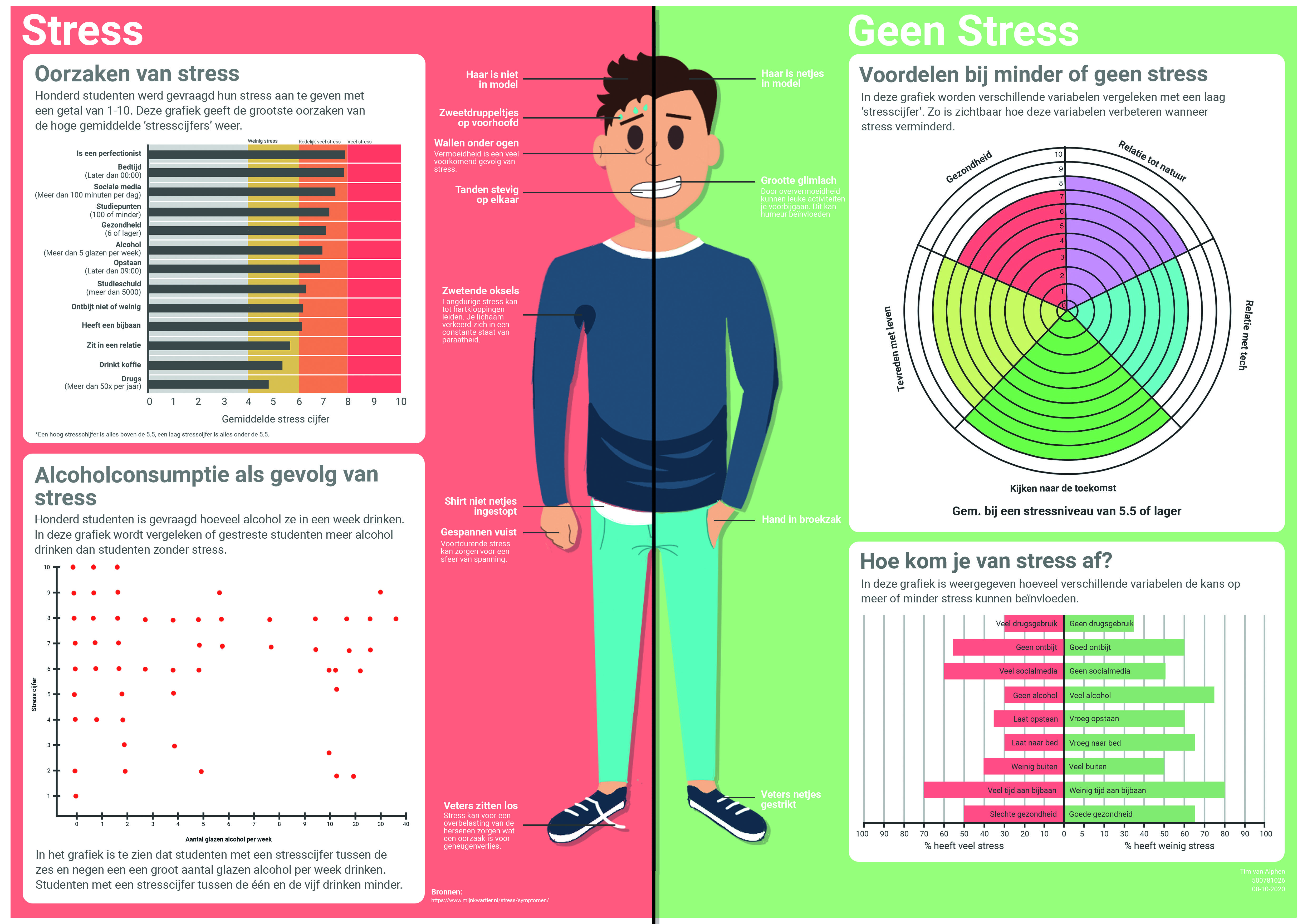 Deze datavisualisatie geeft de gevolgen weer van de student die zich gestrest voelt en de student die zich niet gestrest voelt. Alle data is weergegeven in een toepasselijke grafieken.