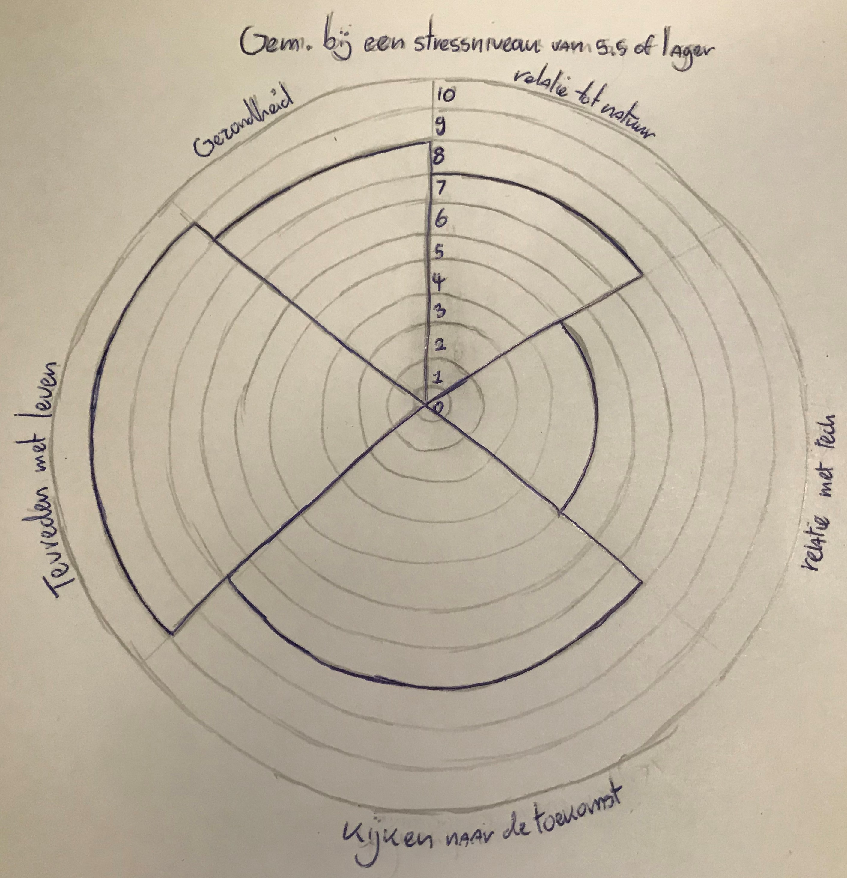Dit diagram geeft aan waar studenten met een laag gemiddeld stress niveau zich mee bezig houden.