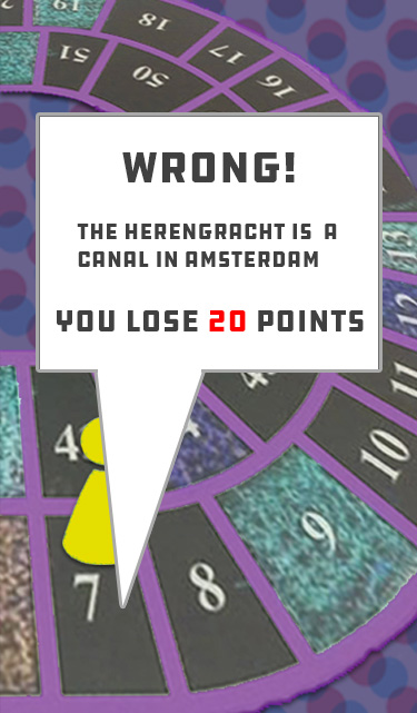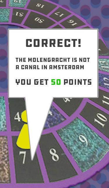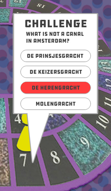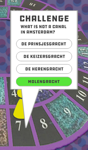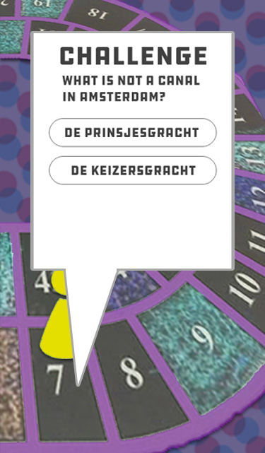 Tijdens het spel moet je vragen over amsterdam beantwoorden. Wanneer je een vraag goed beantwoord verdien je punten, en wanneer je een vraag fout beantwoord verlies je punten. Ook zijn er hindernis vakjes waardoor je stappen achteruit moet.