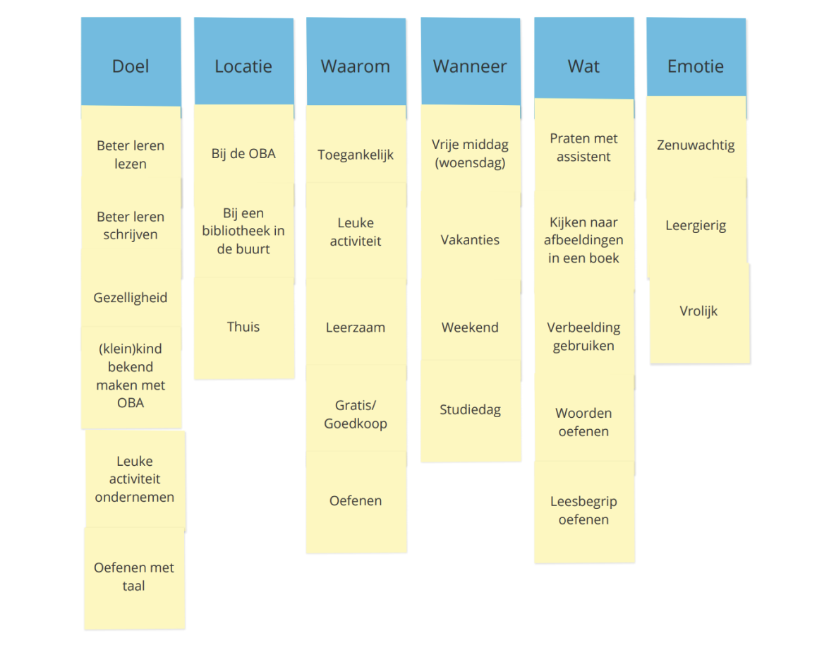 Bij het ontwikkelen van deze ervaring was het voor ons erg belangrijk dat we de juiste locatie beschikbaar hadden. Hiervoor hebben we een context map opgesteld. Bij het zoeken naar de juiste locatie hebben we gelet op; de hoeveelheid ruimte, hoe rustig de locatie is en dat de locatie geschikt is voor kind en ouder.