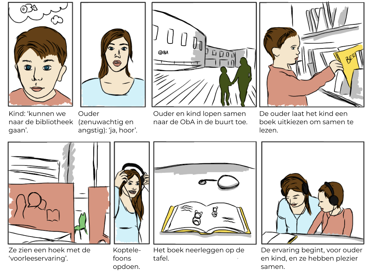 De OBA heeft ons gevraagd een interface te ontwikkelen om laaggeletterde ouders te helpen bij het voorlezen van hun kinderen.